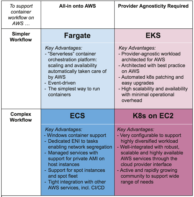 개인적으로, EKS는 다수의 컨테이너가 필요한 대규모 서비스에서 적합한 방법이라고 생각한다. 모니터링 툴이나 부가적인 관리 도구가 필요한 경우가 아니고 소규모로 운영하는 경우에는 ECS를 선택하는 것이 유리할 것으로 판단된다.