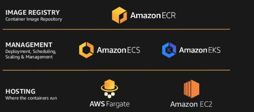 컨테이너 이미지를 저장하는 Image Registry, 서비스 관리 및 배포하는 Management 그리고 컨테이너가 실행되는 Hosting 크게 3가지 역할로 나뉜다. 편의상 3가지로 나누기는 했지만, 경계가 명확하게 나뉘어지는 것은 아니다.(e.g. EC2에 K8S로 서비스를 한다던가) 참고하는 정도로만 알고 있으면 될 것 같다.